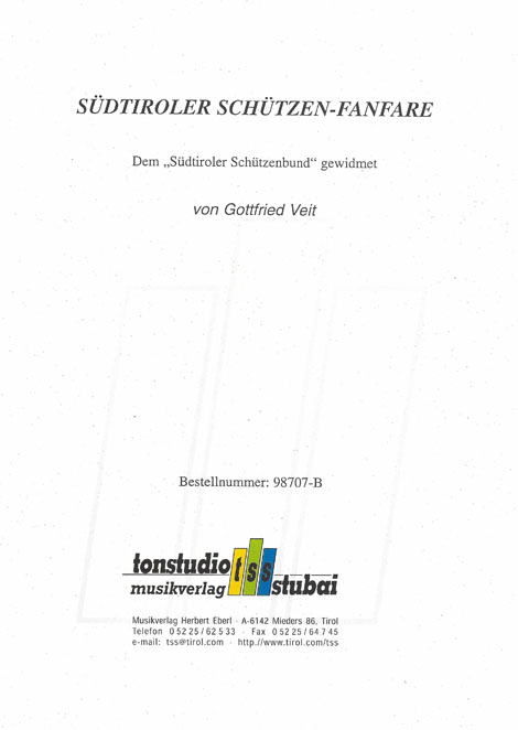 Der Südtiroler Landeskapellmeister komponierte nicht nur einen "Südtiroler Schützenmarsch", sondern auch eine "Südtiroler Schützen-Fanfare", welche er dem "Südtiroler Schützenbund" widmete. Diese Fanfare entstand im Jahre 2004 und wurde anlässlich eines großen Schützentreffens im selben Jahr in Toblach uraufgeführt. Das prägende Element dieser Komposition ist das Themenzitat des bekannten Liedes "Es lebt der Schütze froh und frei". Einen historischen Anstrich erhält dieses Werk zum einen durch den Einsatz einer zusätzlichen Rührtrommel und zum anderen durch fast durchgehende Trompetensignale. Die "Südtiroler Schützen-Fanfare" erschien im Jahre 2004 beim Tiroler TSS-Verlag in Druck.